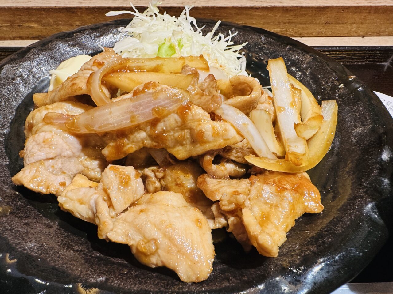 うどんが美味しくて有名なまさや食堂ですが、一度食べてから大ファンになってしまったのがこちらの生姜焼き定食です。