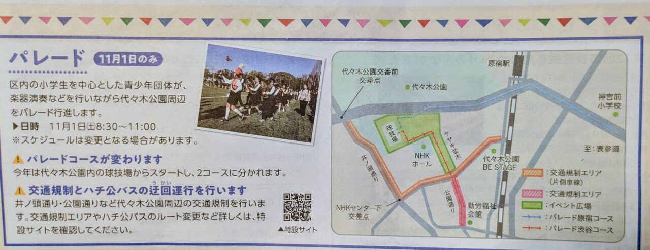 【渋谷区】11月1日は、ふるさと渋谷フェスティバルパレード開催のため、一部車両通行止めとなります。
