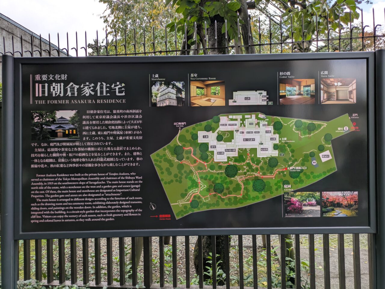 主屋と土蔵は重要文化財に指定されています。回遊式庭園は、三田用水からの流水を導いた跡や四阿の形跡が残されており、石灯籠などの添景物が配置されています。訪れたのは11月ですが、まだ紅葉は始まっていませんでした。美しく色づいた庭の景観を見ていたい!