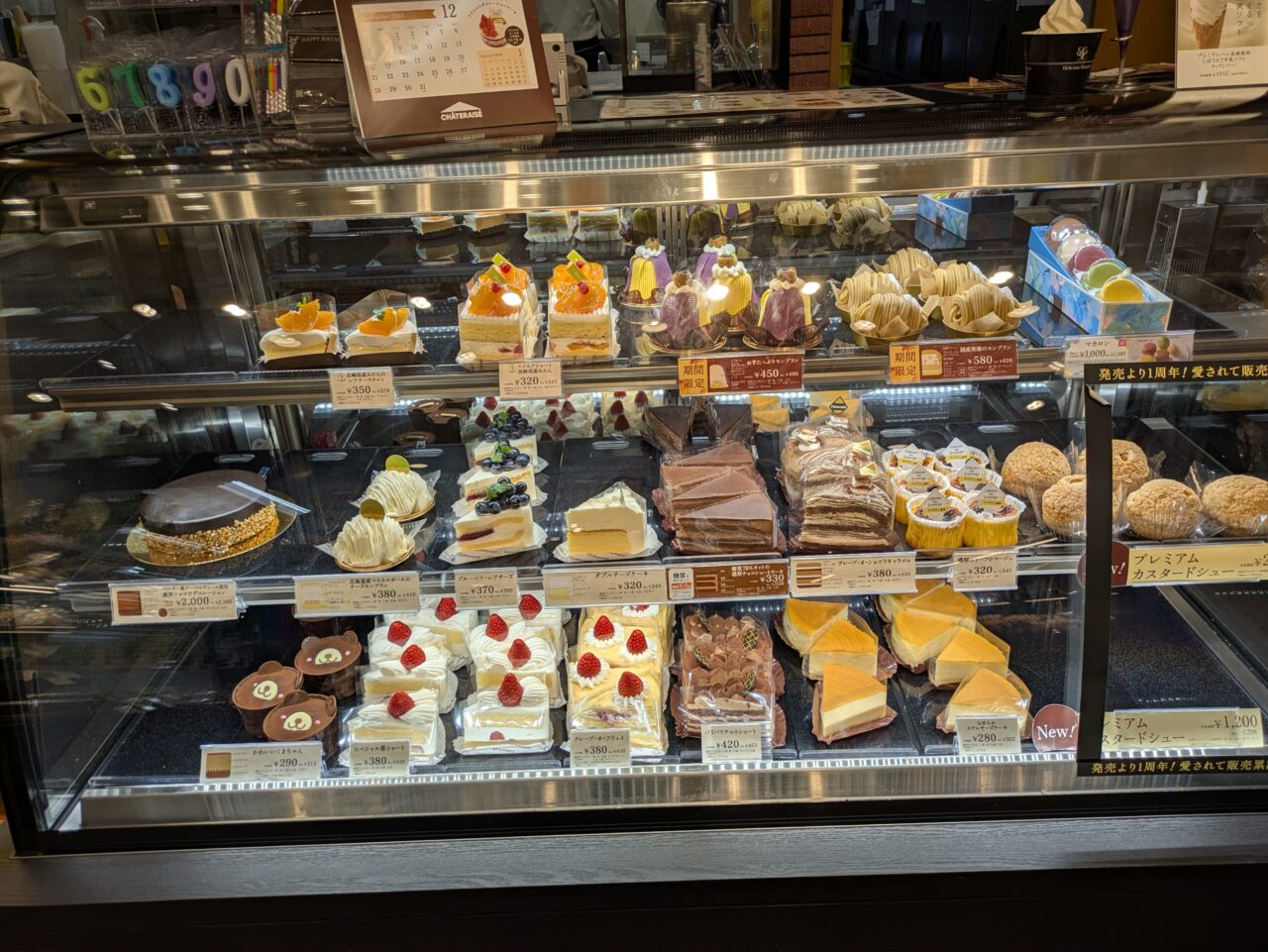 ショーケースには、定番のショートケーキやチーズケーキ、チョコレートケーキをはじめ期間限定商品など、今すぐ食べたくなるようなケーキがずらりと並んでいます。