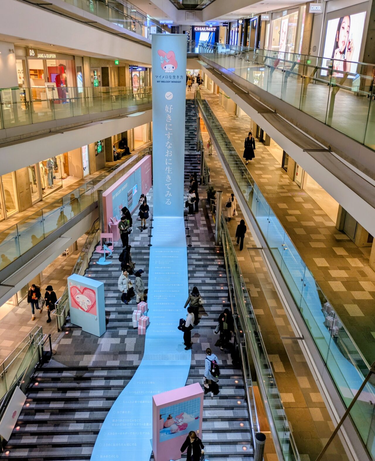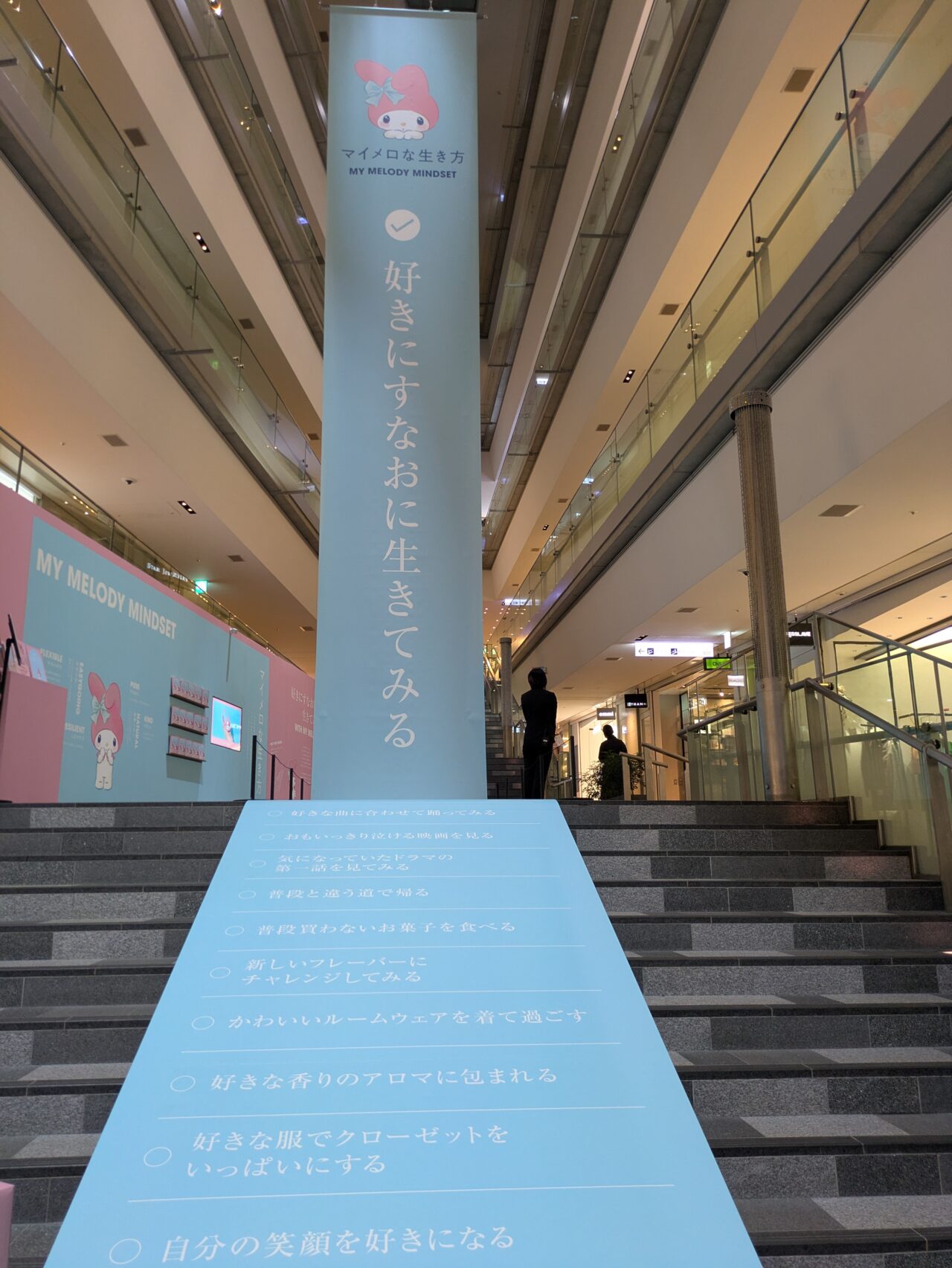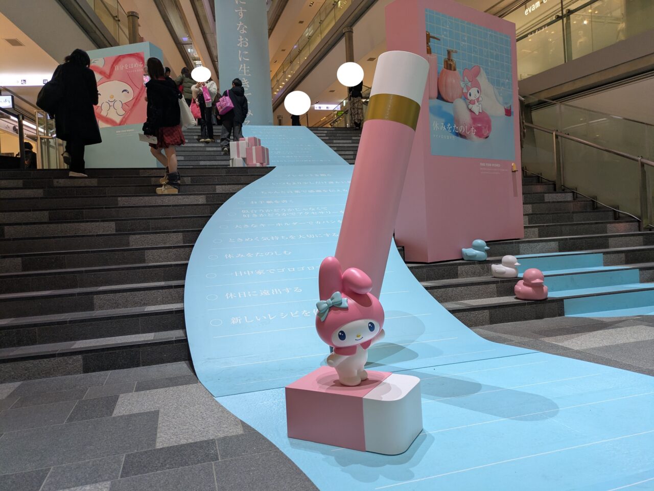 2026年1月15日から「好きにすなおに生きてみる展 WITH MY MELODY」が表参道ヒルズの吹抜け大階段で開催されています。
