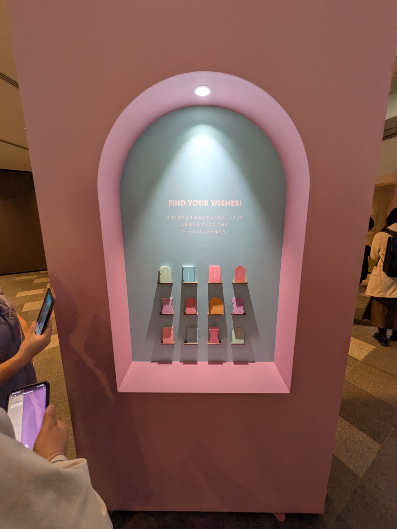 イベント会場には、「巨大ウィッシュリスト」の懸垂幕が敷かれています。シンプルなのにハッと気づかせてくれるようなグッとするウィッシュがたくさん散りばめられています。キュンとするウィッシュもあります。マイメロ、可愛い!だけど可愛いだけで括れない、子供から大人まで楽しめる空間でした。