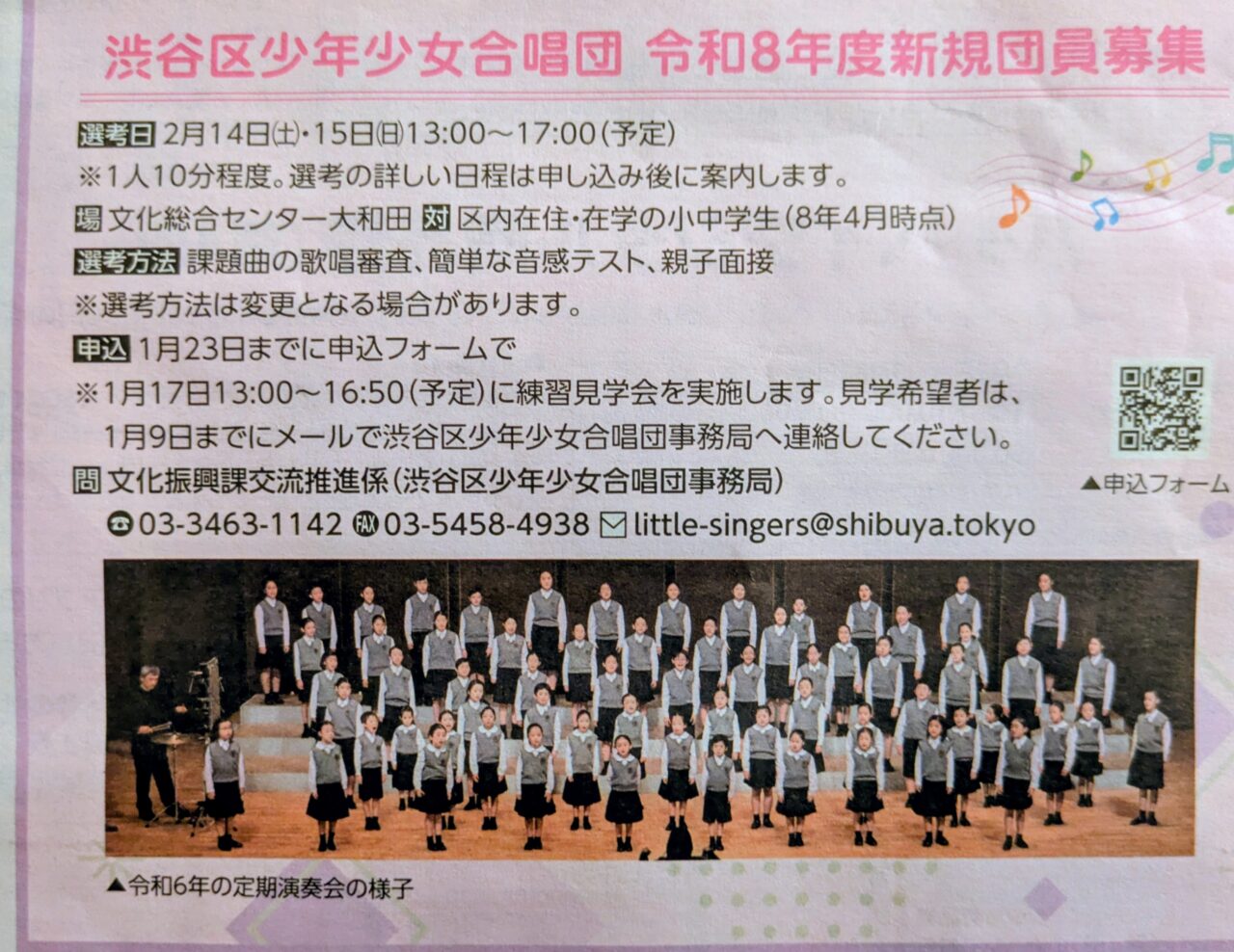 渋谷区少年少女合唱団の令和8年度の新規団員募集申込