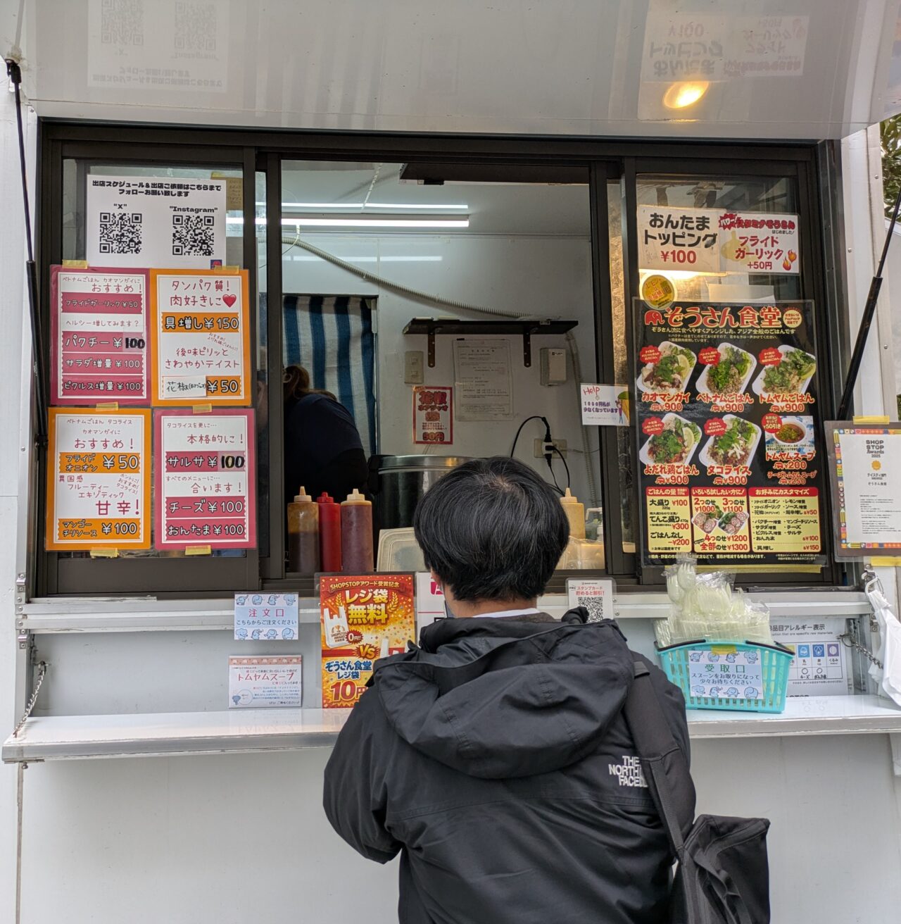 お昼時の12時すぎると大体人が並んでいます。「ぞうさん食堂」が来る日は、いつも朝からソワソワ。あんまり並ぶのも嫌だし、だからと言って混む時間を避けたが故に売り切れなんてことにならないようにと、気が気ではありません。