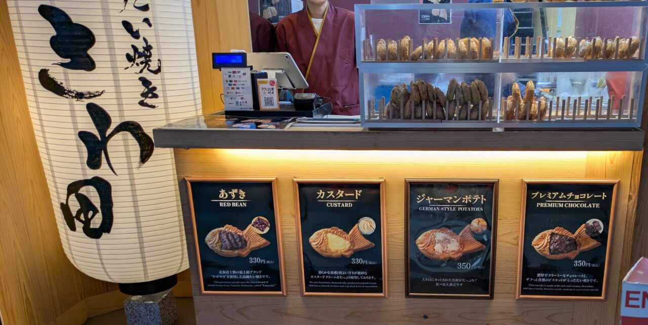 販売されているたい焼きは、スタンダードのあずきやカスタードの他、期間限定、季節限定商品が並びます。