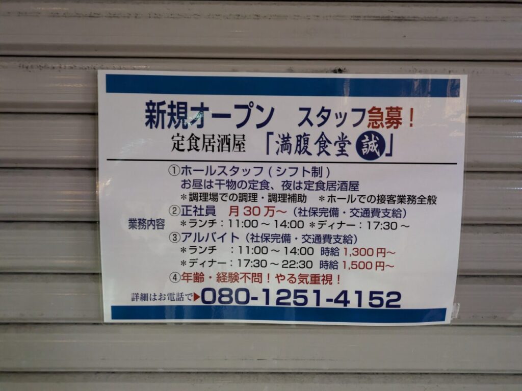 お店の名前は「満腹食堂 誠」。オープン日は、2026年4月1日ということです。現在正社員、アルバイトが募集中となっています。「満腹食堂 誠」が気になる方は、ぜひご応募されてみてはいかがでしょうか。