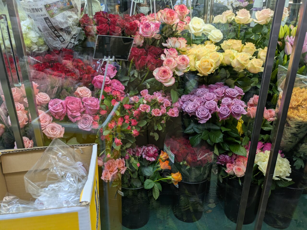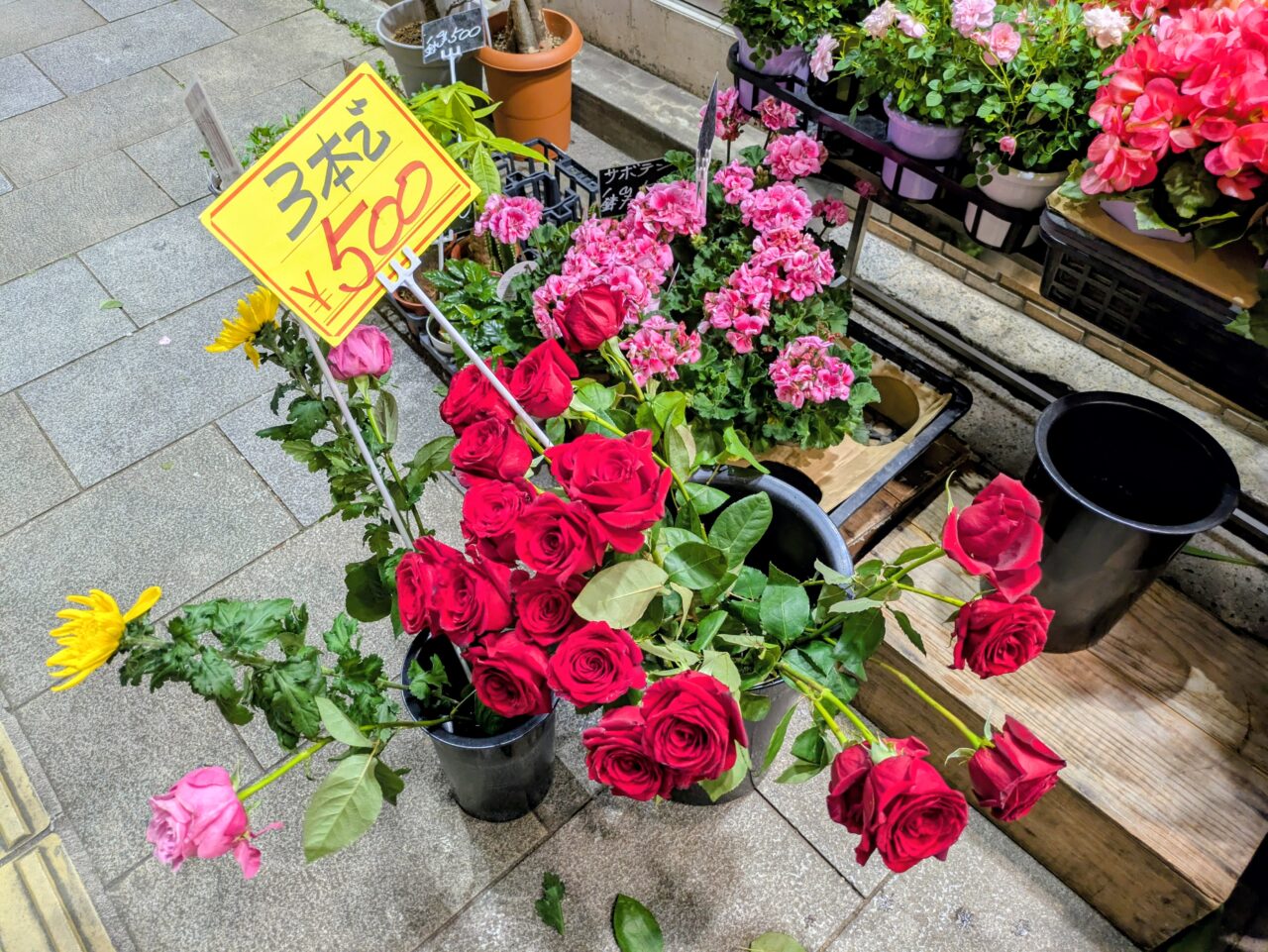 港区にあるお花屋さんと聞くとなんだか高そうなイメージですが、こちらのお店の価格設定は嬉しくなるくらいお手頃なのです。特に店頭に置かれているお花がお買い得価格です。パックの薔薇の花束が、なんと1,500円。1束が大量にブーケされているにも関わらず!